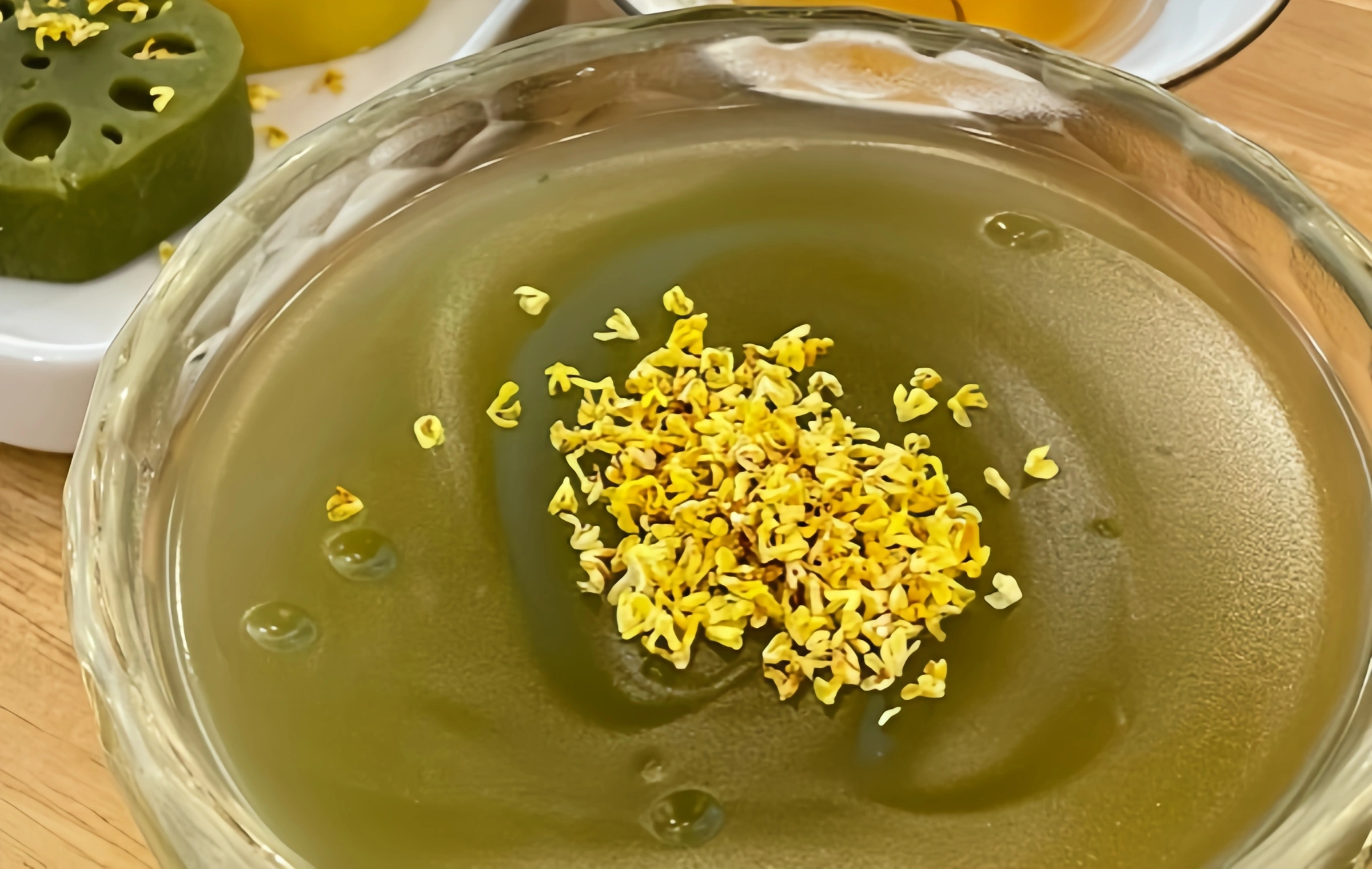 特徴: ウェスト・レイク・ロータス・ルート・プディングは、杭州の自然の美しさの本質を捉えるデザートです。 蓮根の澱粉、砂糖、水から作られたこのプリンは、さわやかで辛いテクスチャーで、爽やかで爽やかです。 オスマンサスの花や蓮の種子の追加は、花の香りと新しい高さに皿を上昇させる微妙な甘みを追加します。